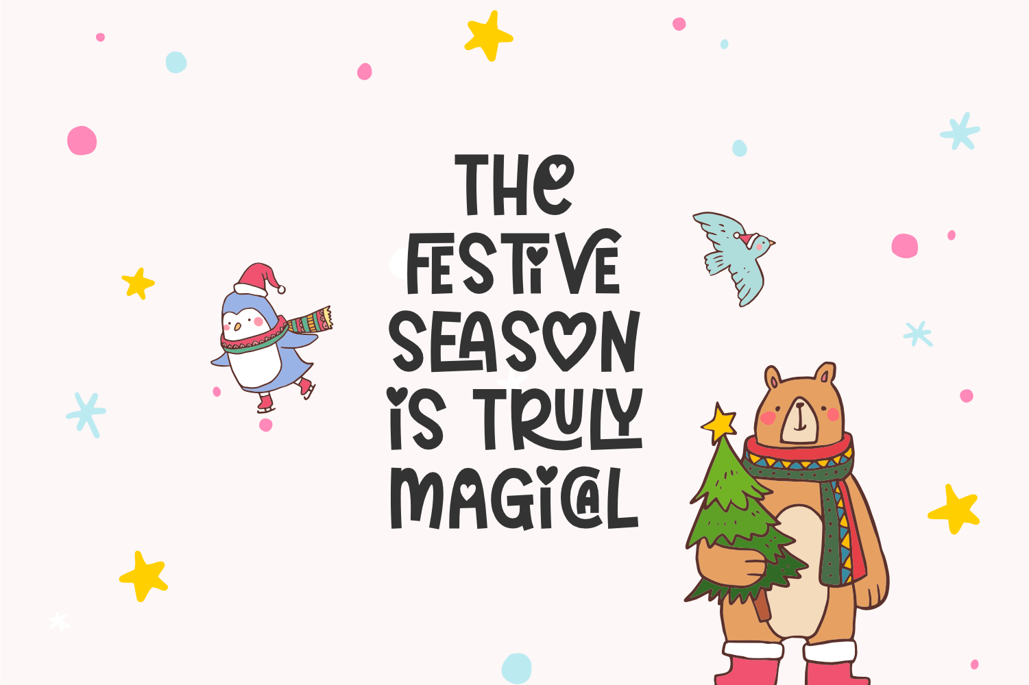 “Cheerful Holiday” lends a charming ambiance perfect for any festive holiday, birthday celebration, Valentine’s tokens, rustic farmhouse themes, or Kindergarten learning materials. Become synonymous with joy, positivity, and fun with this visually delightful and utterly captivating typeface!