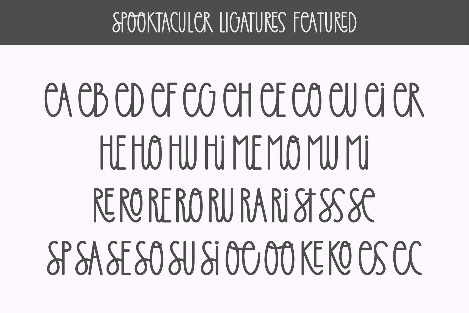 Introducing Spooktaculer, a simple monoline Halloween font, a font that effortlessly captures the delights and thrills of Halloween. This typeface not only enhances every design but also evokes a sense of joy and cheer. Let your creativity run wild and make a statement, whether on t-shirts, greeting cards, stickers, bags or any other Halloween-themed items. The simplicity of Spooktaculer makes it a breeze to use on both Cricut and Sublim machines, providing boundless opportunities for self-expression. It also offers a myriad of handy ligature features, paving the way for unique and captivating design possibilities.